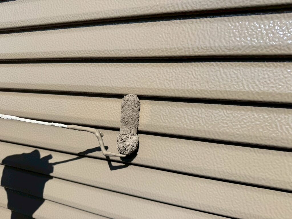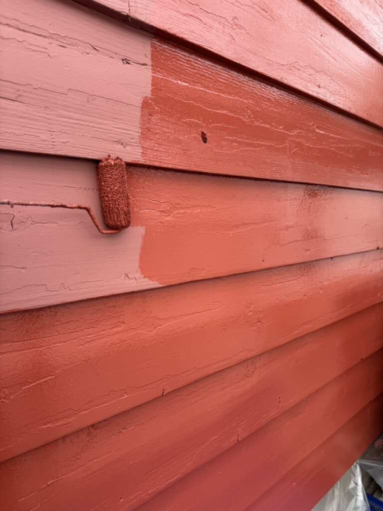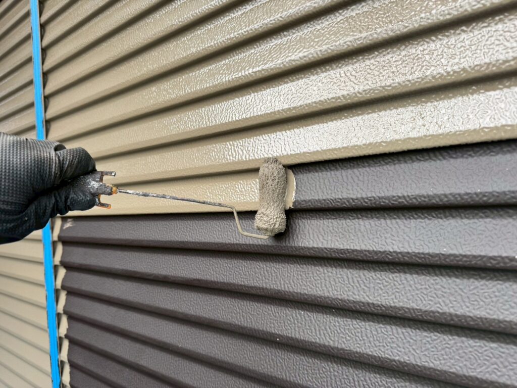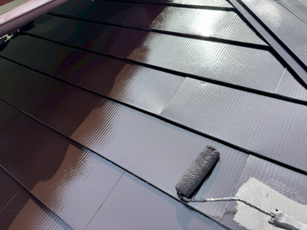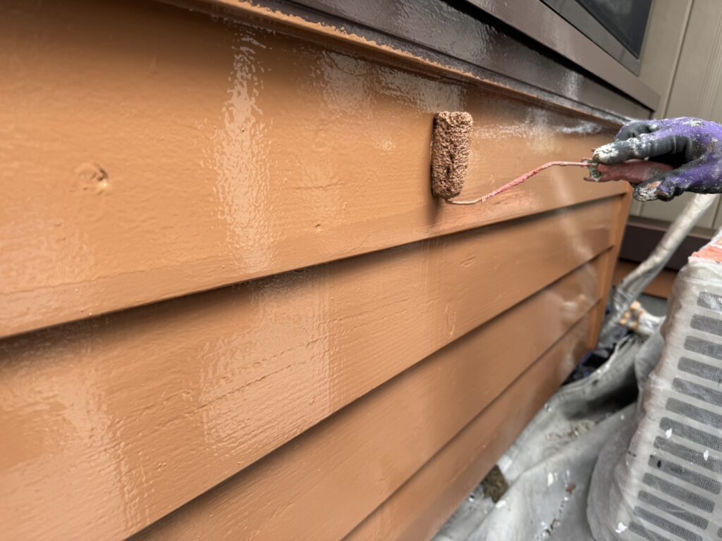 下塗り後、仕上げ塗料を2回塗りして仕上げます。