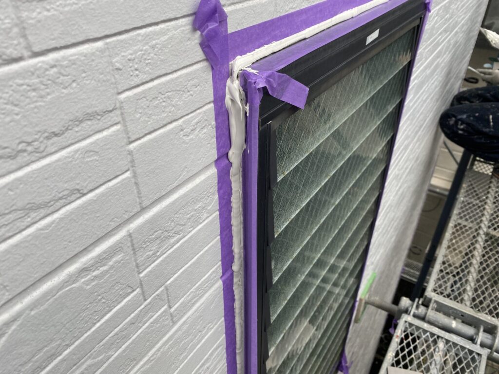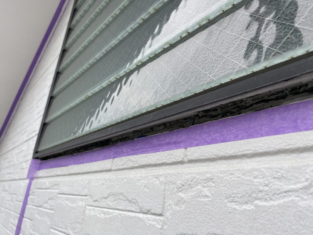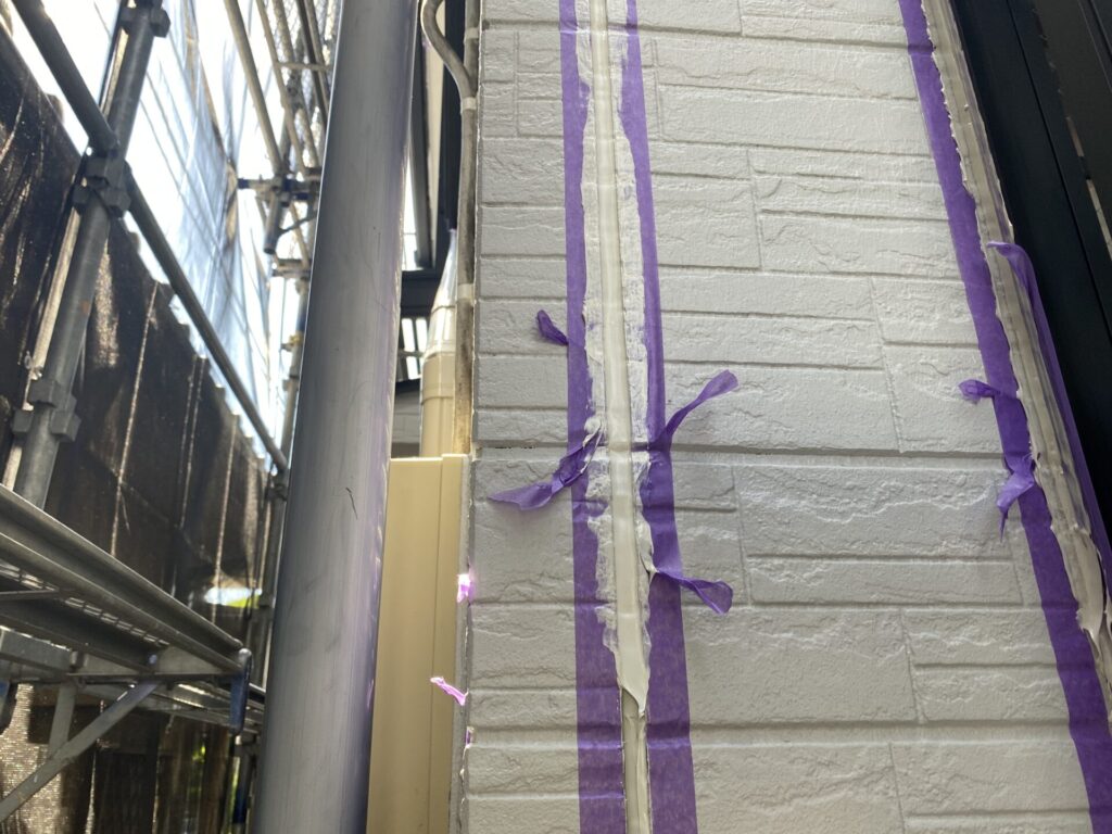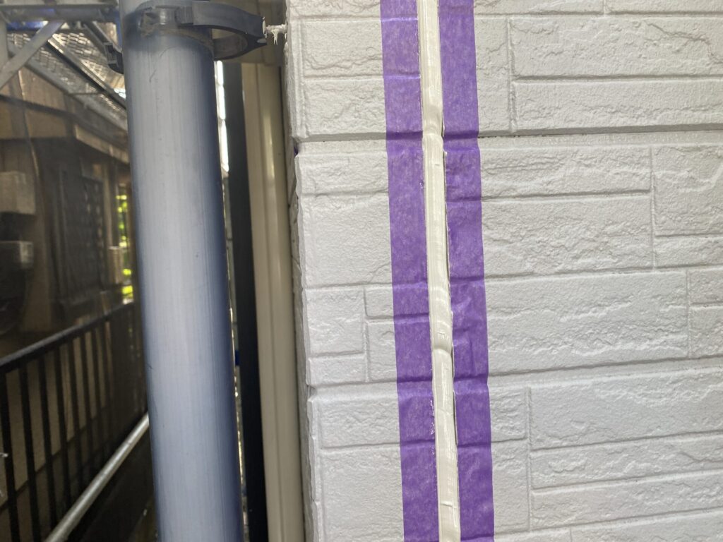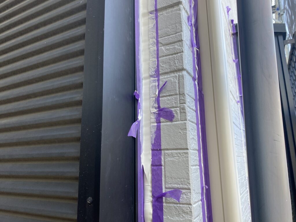 マスキングを貼り終えたら充填部に専用プライマーをたっぷりと塗布します。乾燥後シーリング材を充填し均して完了になります。