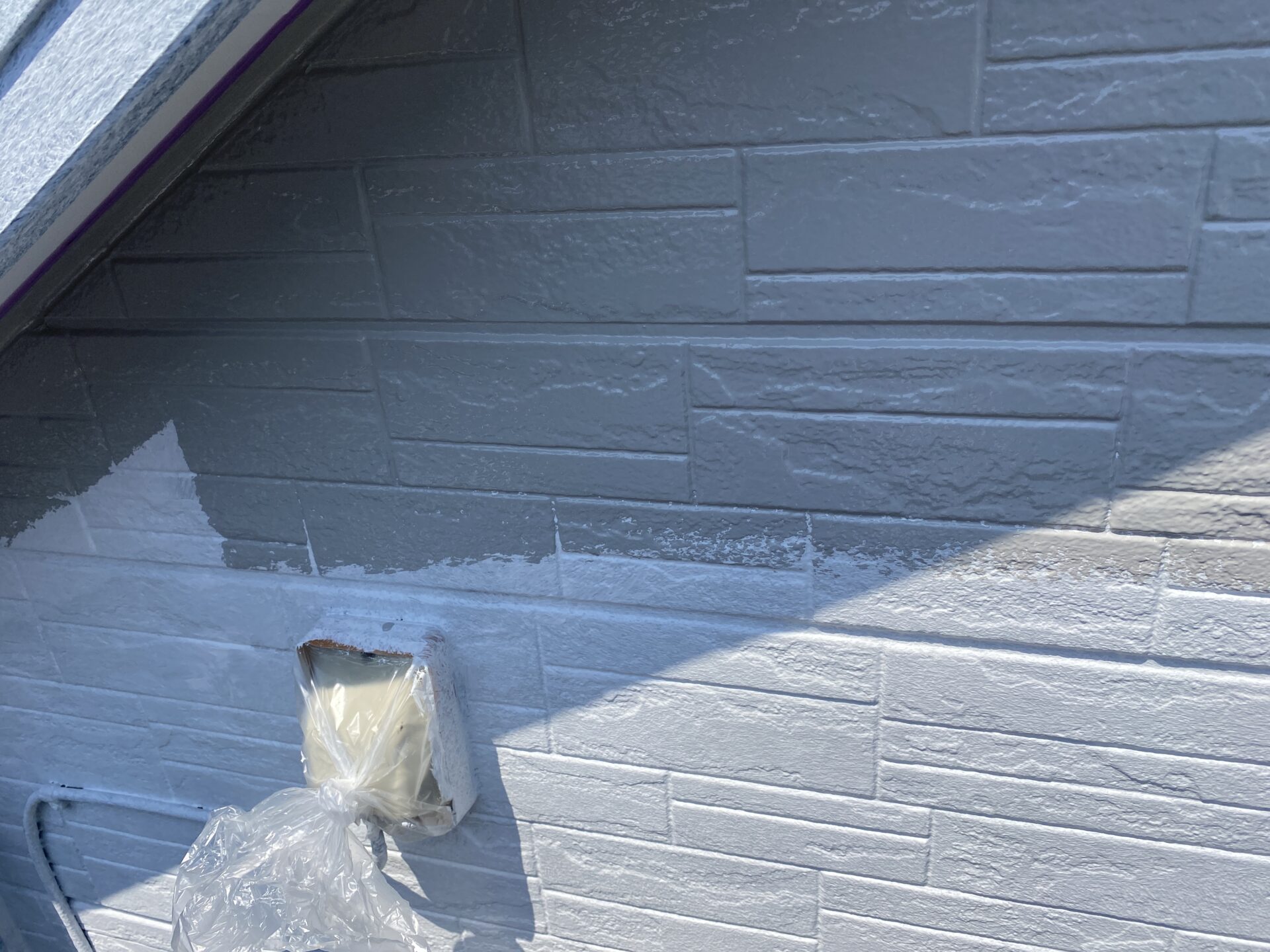 外壁写真が少ないですが、既存塗装下地蔚サイディング用下地調整材を塗装し、仕上げ塗料を2回塗りして仕上げます。