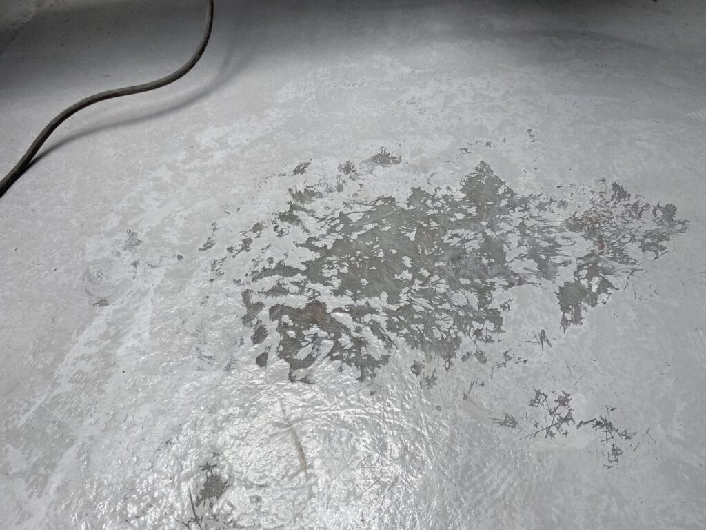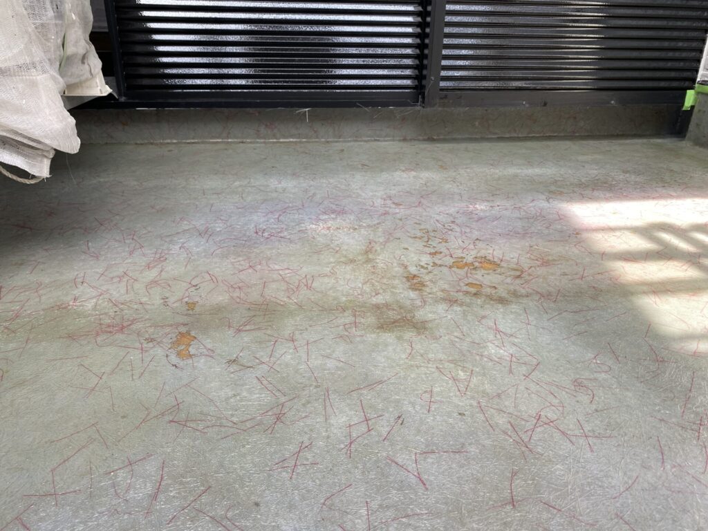 下地全体表面をサンダーでケレンします。アセトンで清掃後、専用プライマーを塗装し、ガラスマットを前面に敷きFRP主剤を塗装します。この特に厚塗りをすると後に剥離するので規定通りの塗布量で塗装します。主剤乾燥後に再度表面をサンダーでケレンします。最後に仕上げ保護塗料を1回塗りして仕上げます。仕上塗料も厚塗りをすると剥離しますので適切に塗装します。