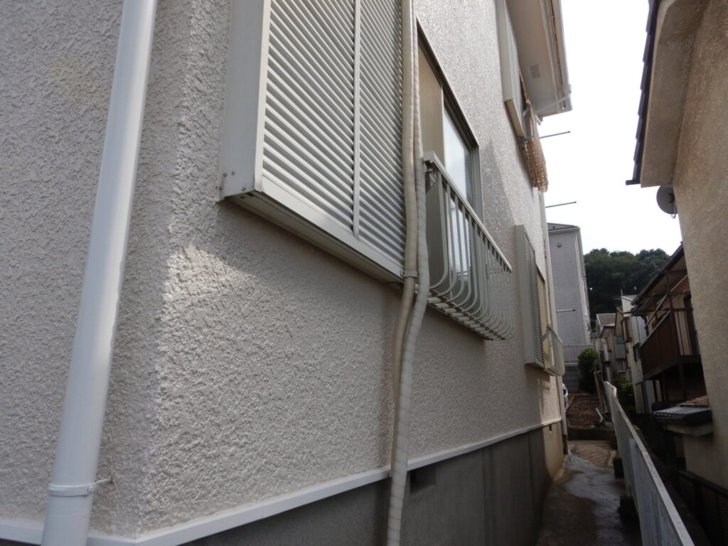 洗浄後は色も白っぽくなったので既存塗膜が剥がれたのと経年汚れが落ちたものと考えられます。