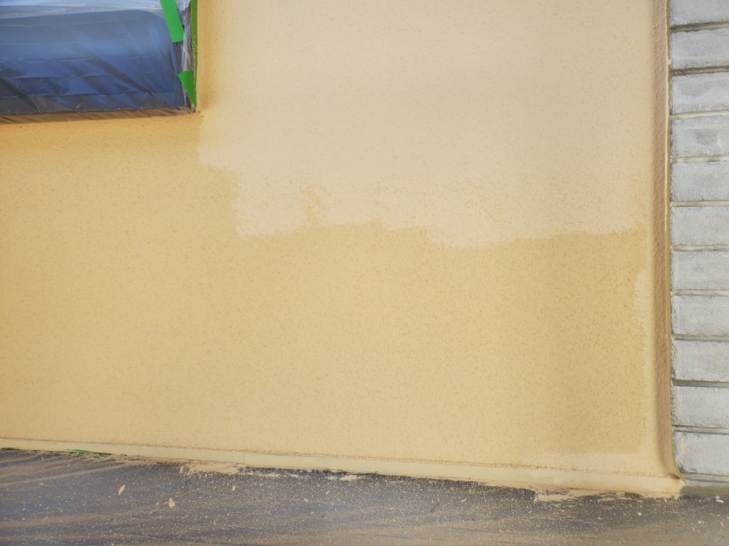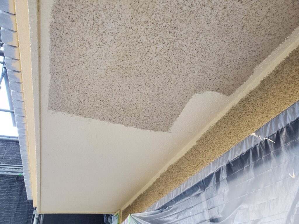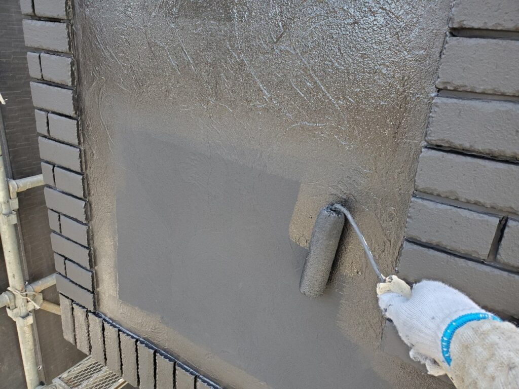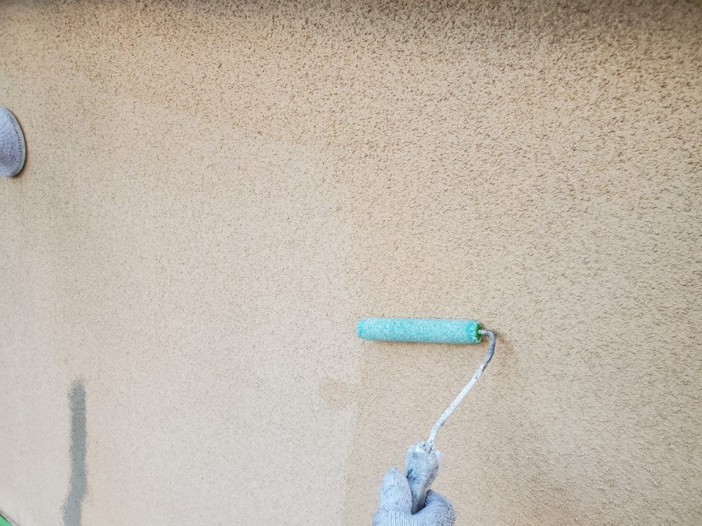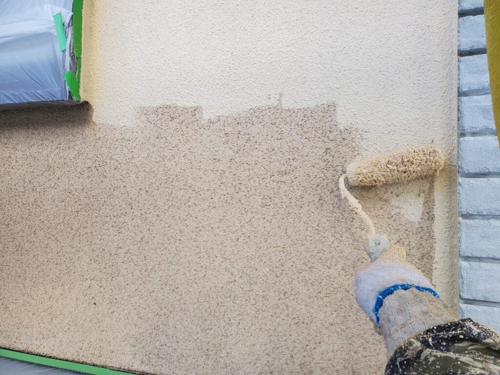 カチオンフィラーの上に水性シーラーを塗装し、溶剤塗料の艶消しを回塗りして仕上げます。