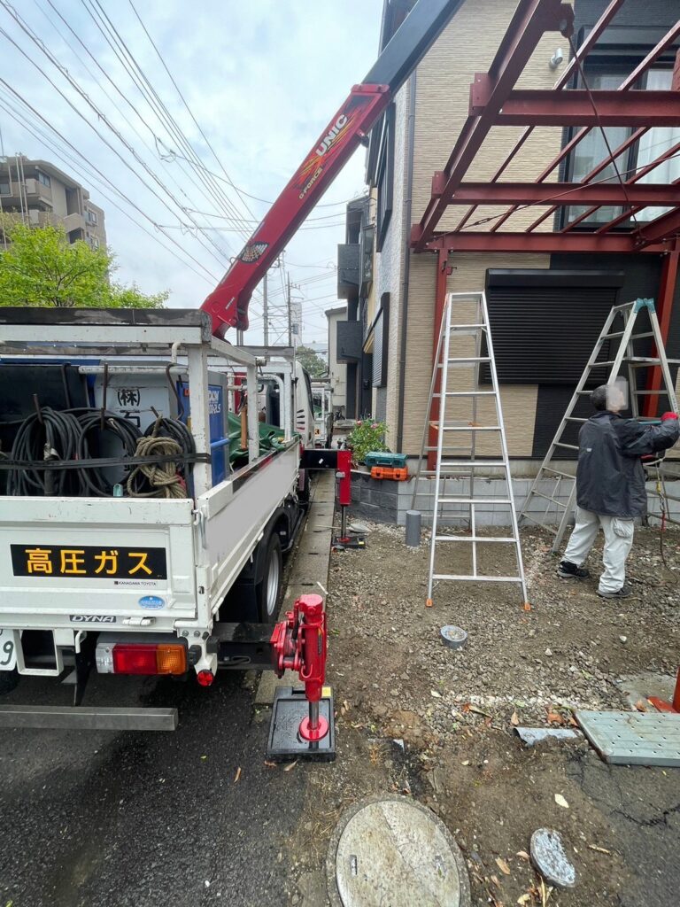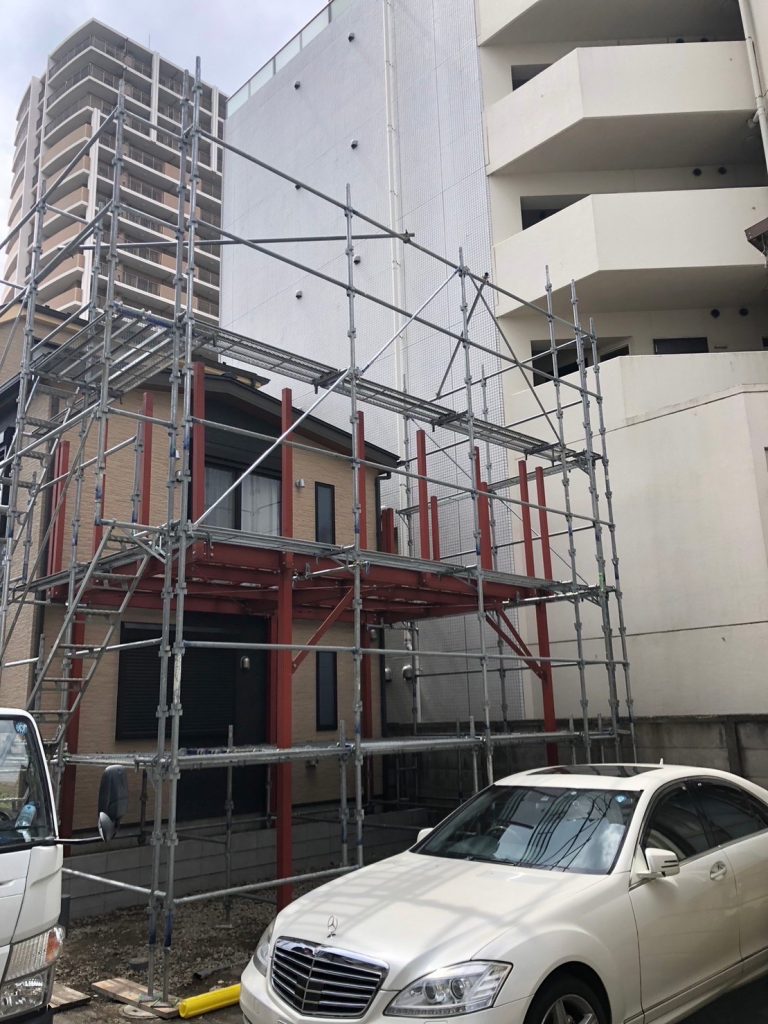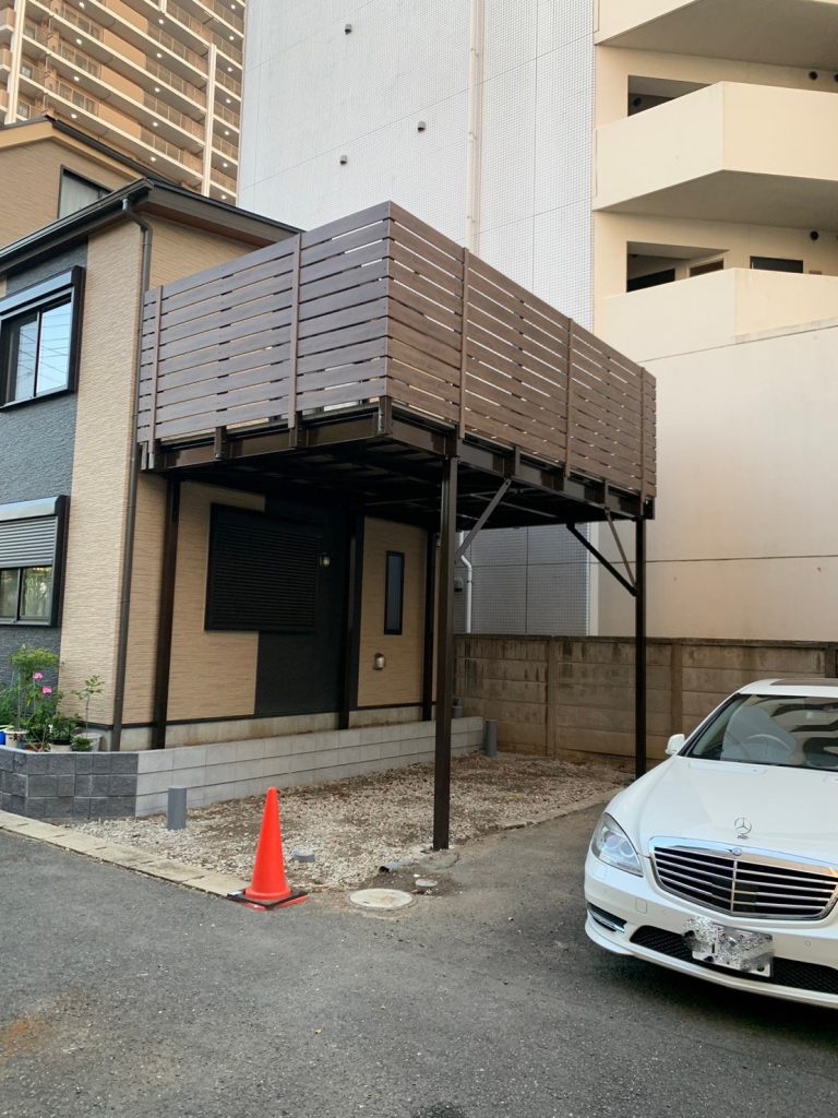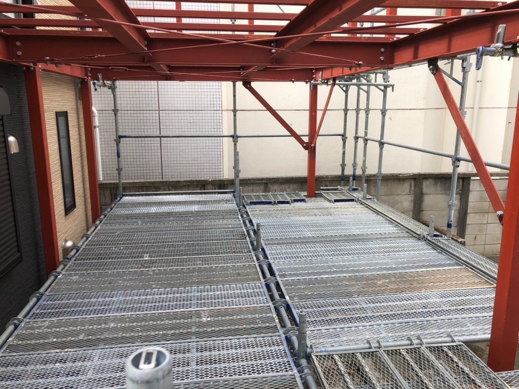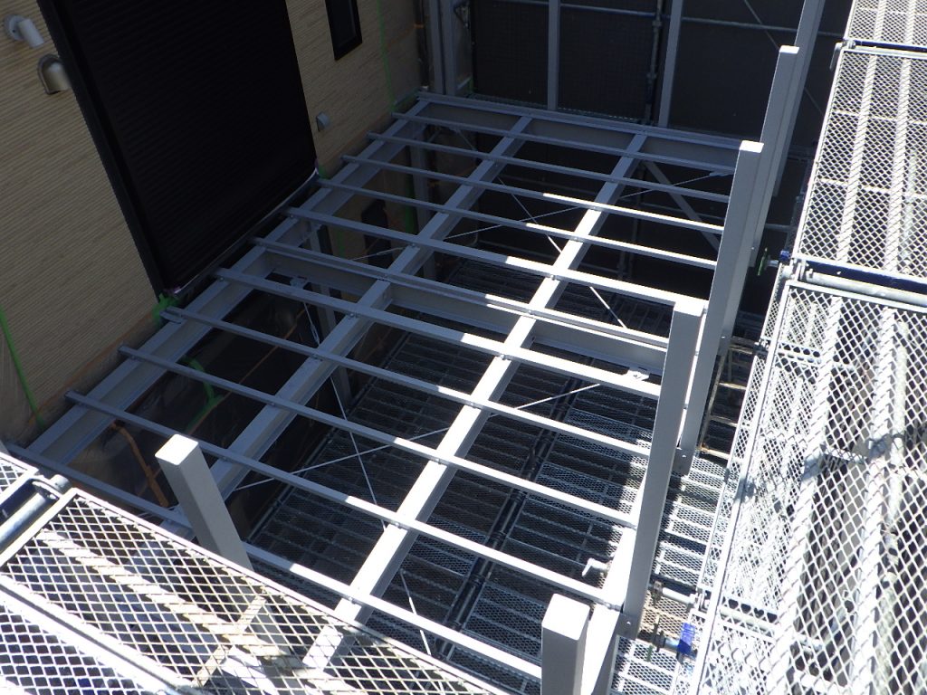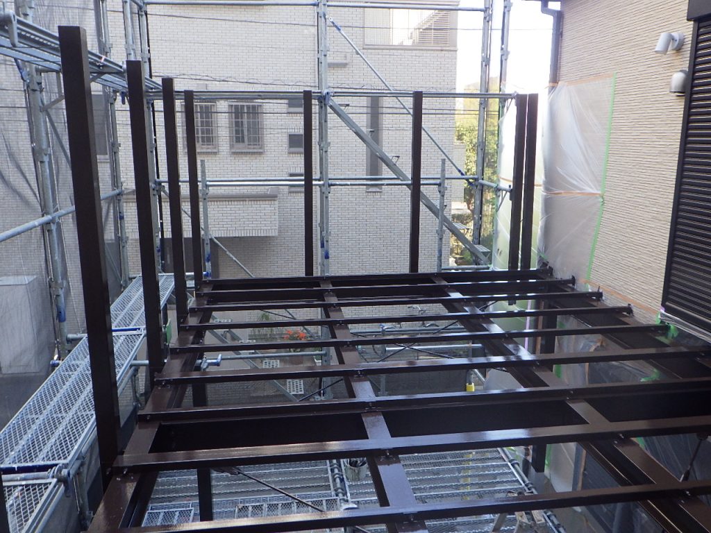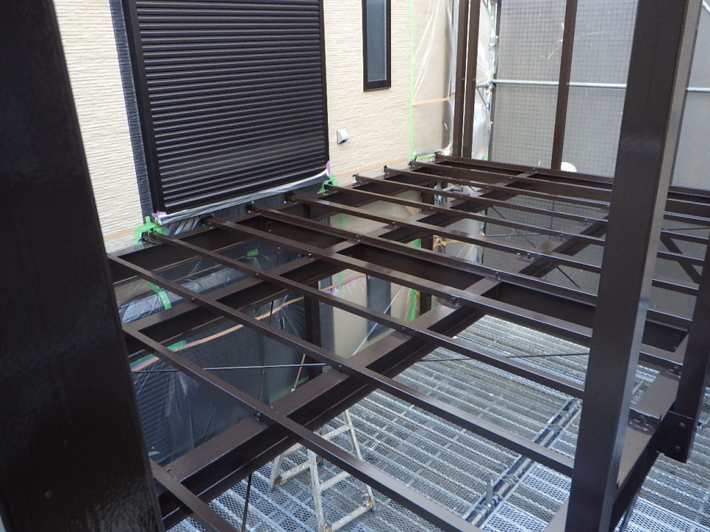 お隣の土地を購入されて既存住宅に鉄骨組のバルコニーを取り付ける工事になります。付帯工事として部分的な塗装のご依頼にになります。