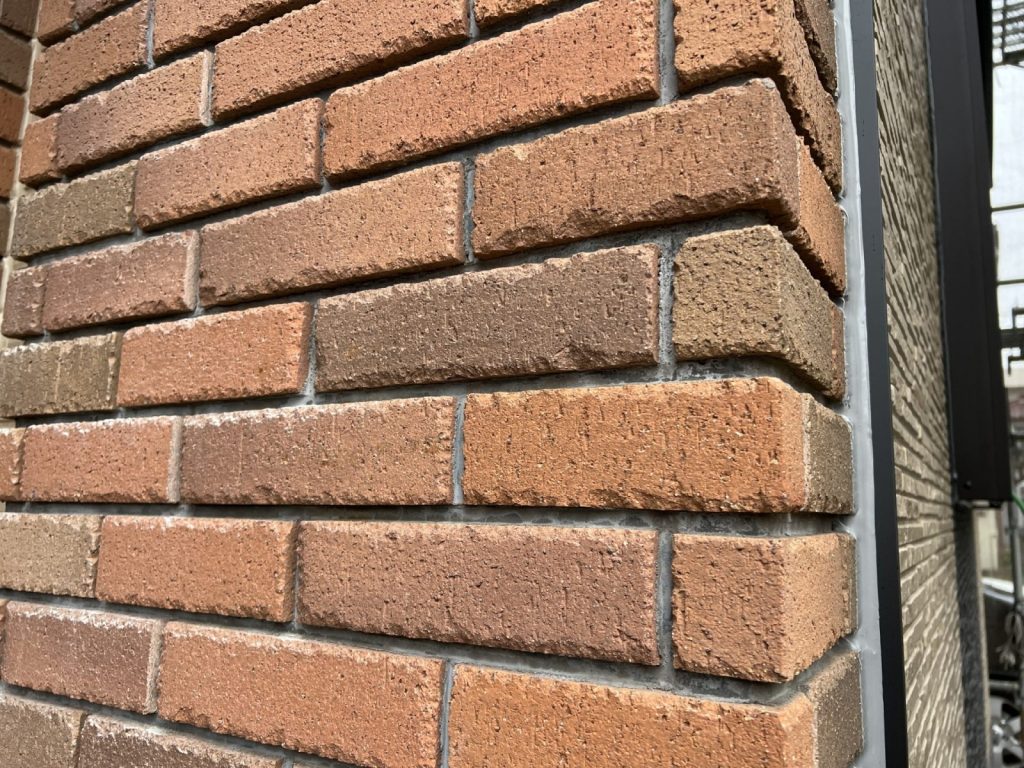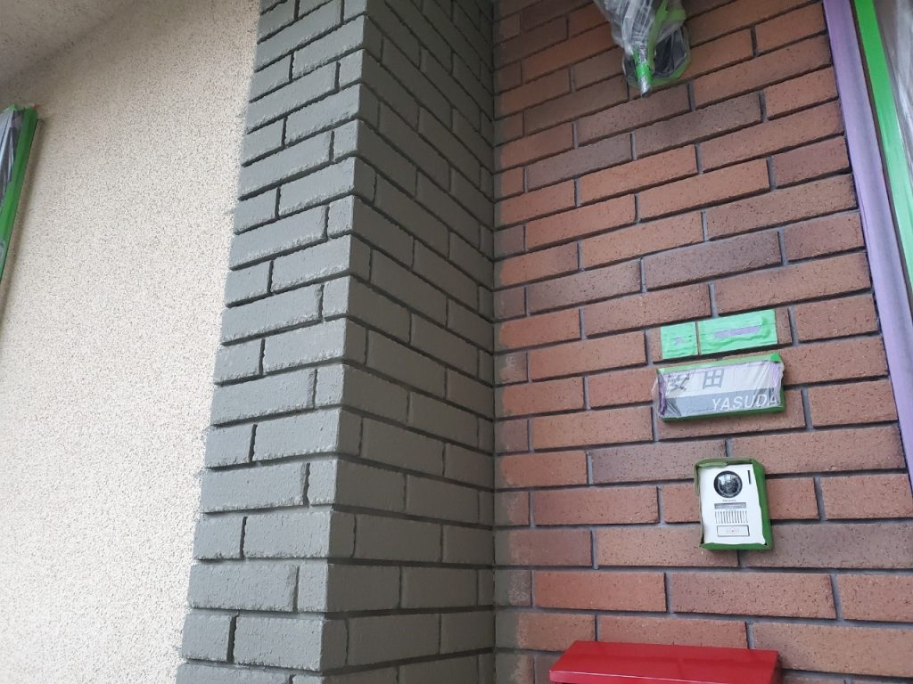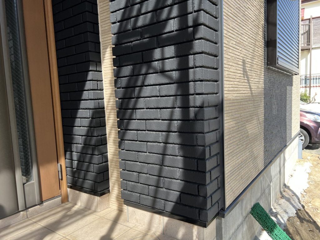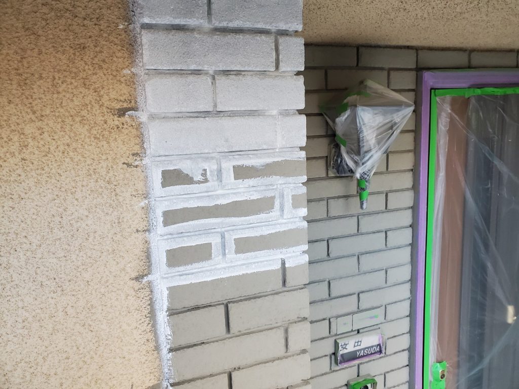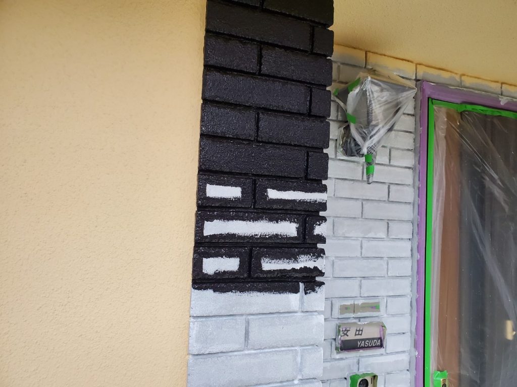 既存レンガを黒のマット仕上げのご希望です。既存にカチオンフィラーを塗ります。