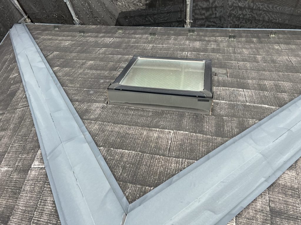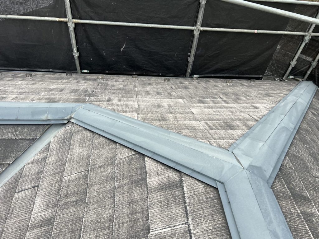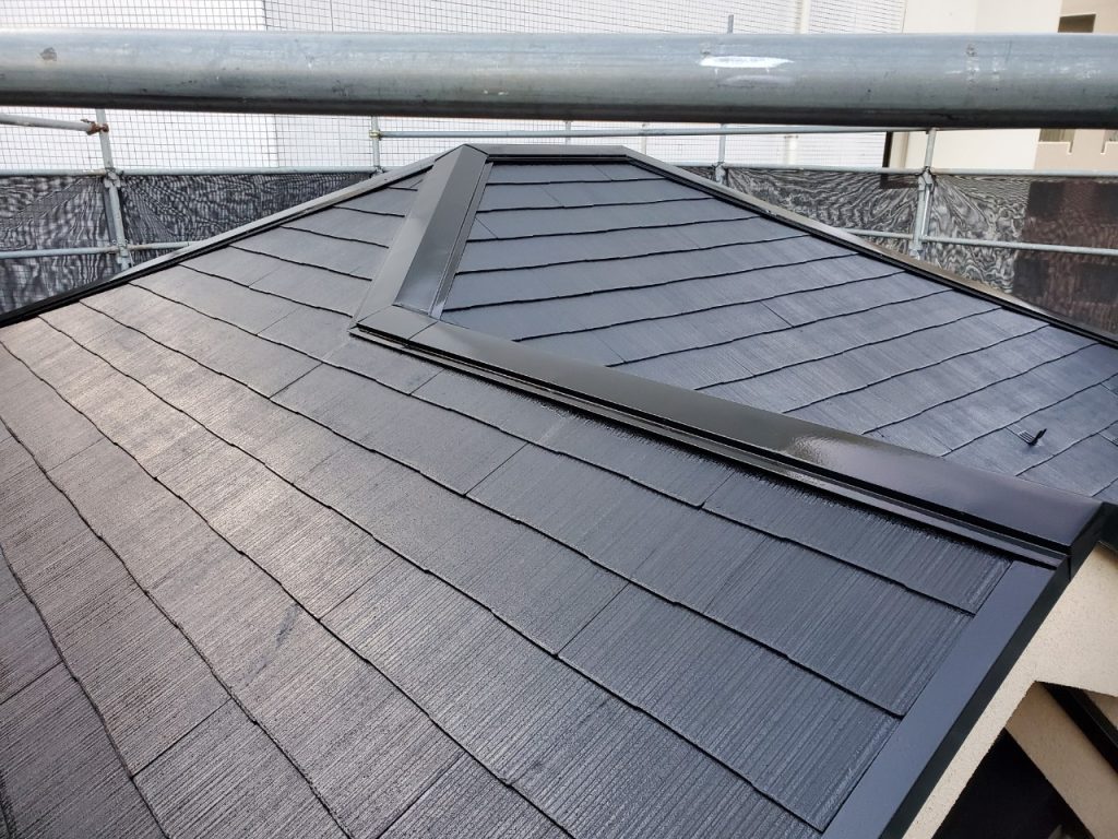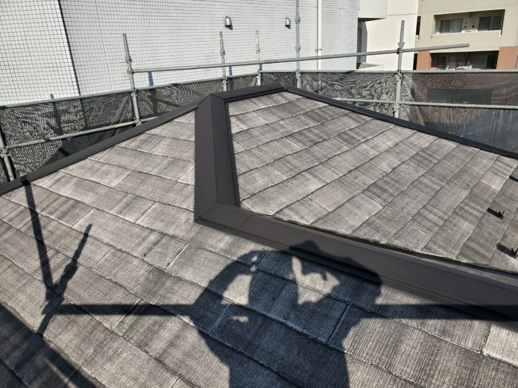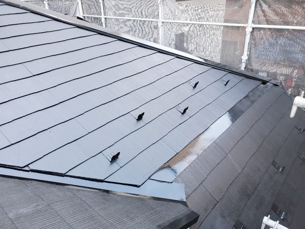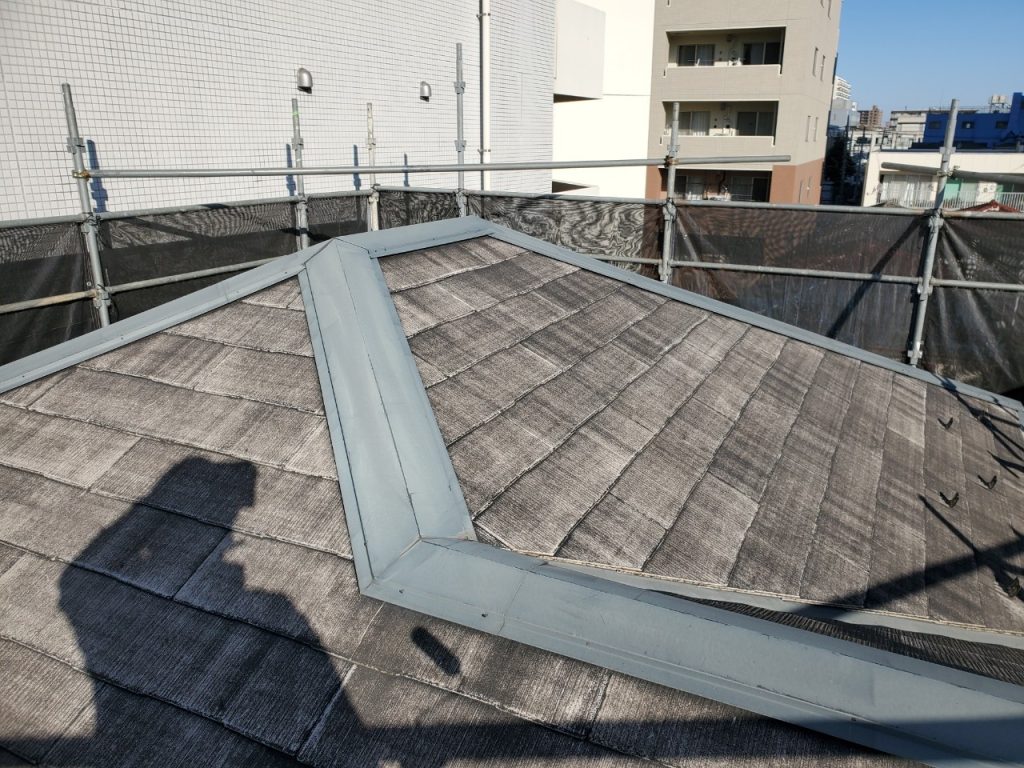 高圧洗浄後の様子。十年以上塗装をしていない場合のやねはこのように基材がむき出しになってしまいます。