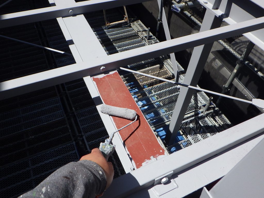 鉄骨塗装で2液性エポキシ樹脂錆止め塗料を塗装します。