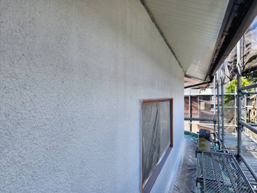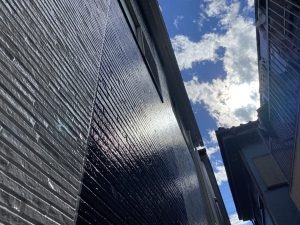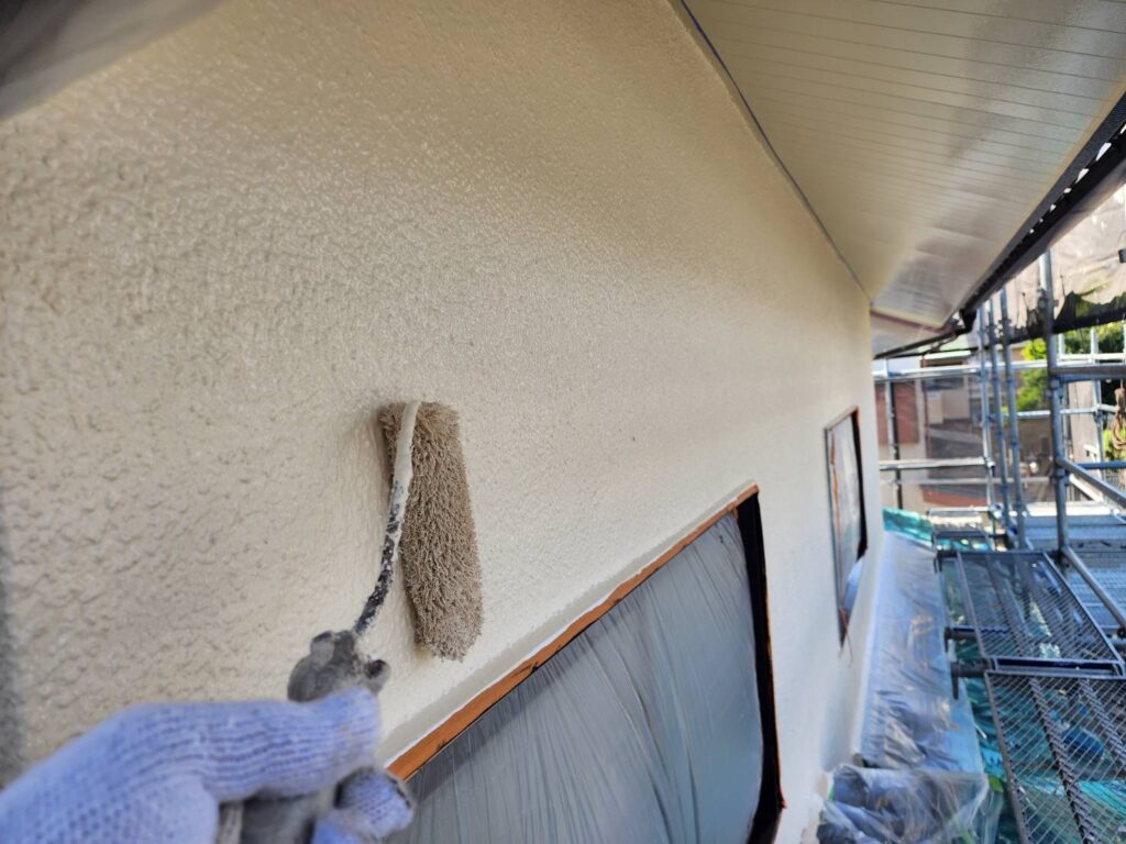 仕上げは弱溶剤シリコン塗料を2回塗りして仕上げます。下塗りは仕上げより重要な工程です。下塗りによって仕上りが大きく変わってきます。