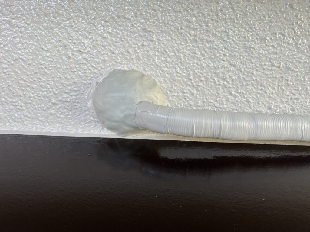 手摺には養生テープを貼って傷の保護に努めています。またエアコンの穴を塞いでいる粘土なども新しく交換します。