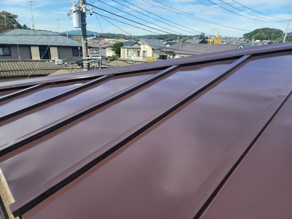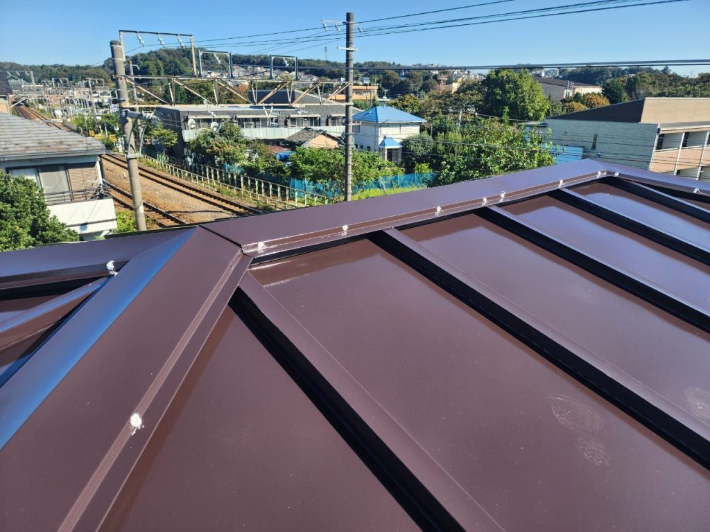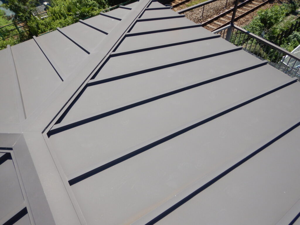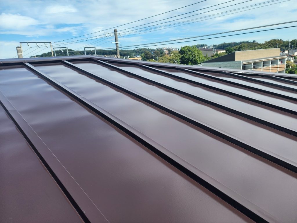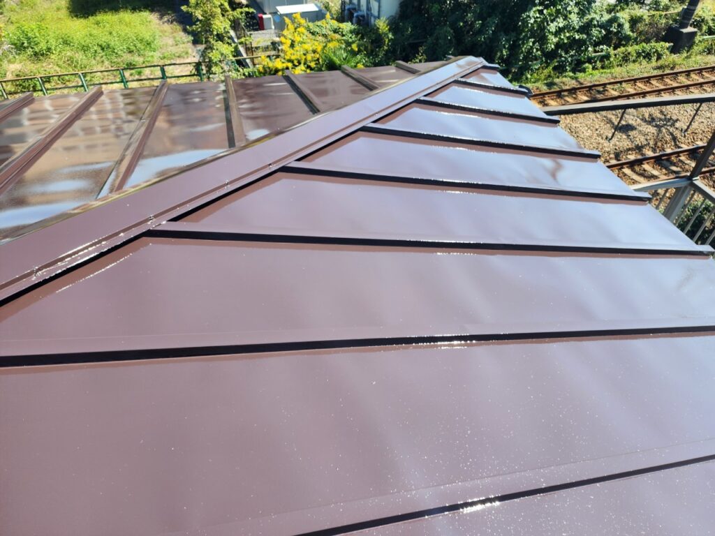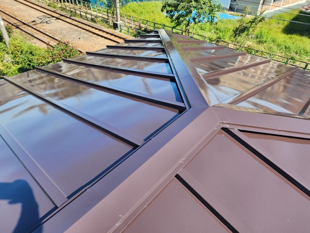 板金屋根のみの塗装工事をさせて頂くことになりました。傾斜がないことから足場を組まずに行いました。