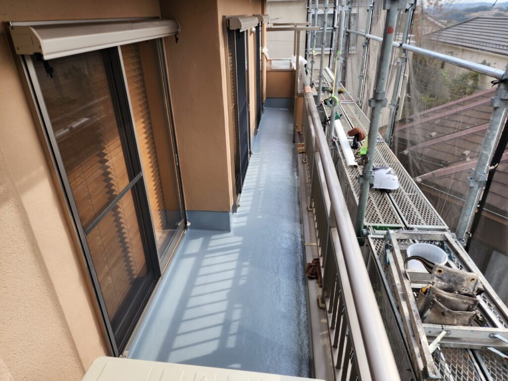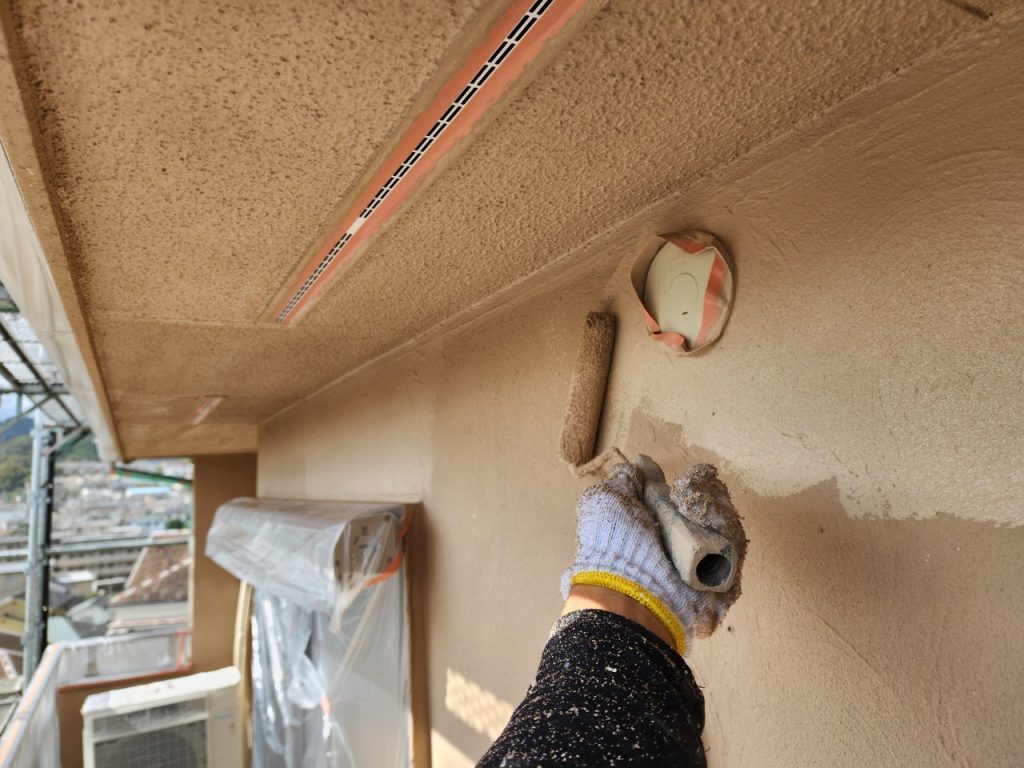 仕上げ塗料を2回塗りして仕上げます。この塗料の難しいところは、補修ができないことがデメリットとしてあります。