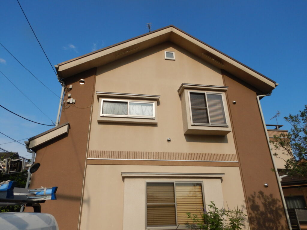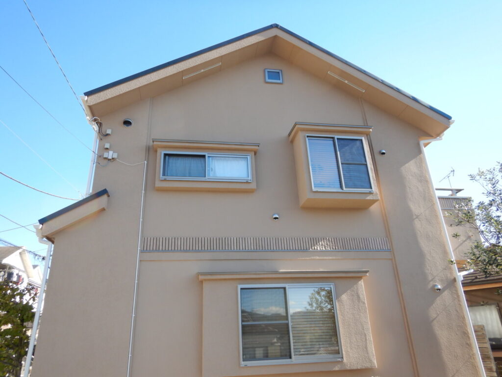 乾燥後に同じ塗料で同じ部分を塗装しても色が変わって見えてしまうことがあります。外壁色によっては補修跡が目立つため、全面を塗装する事も珍しくありません。