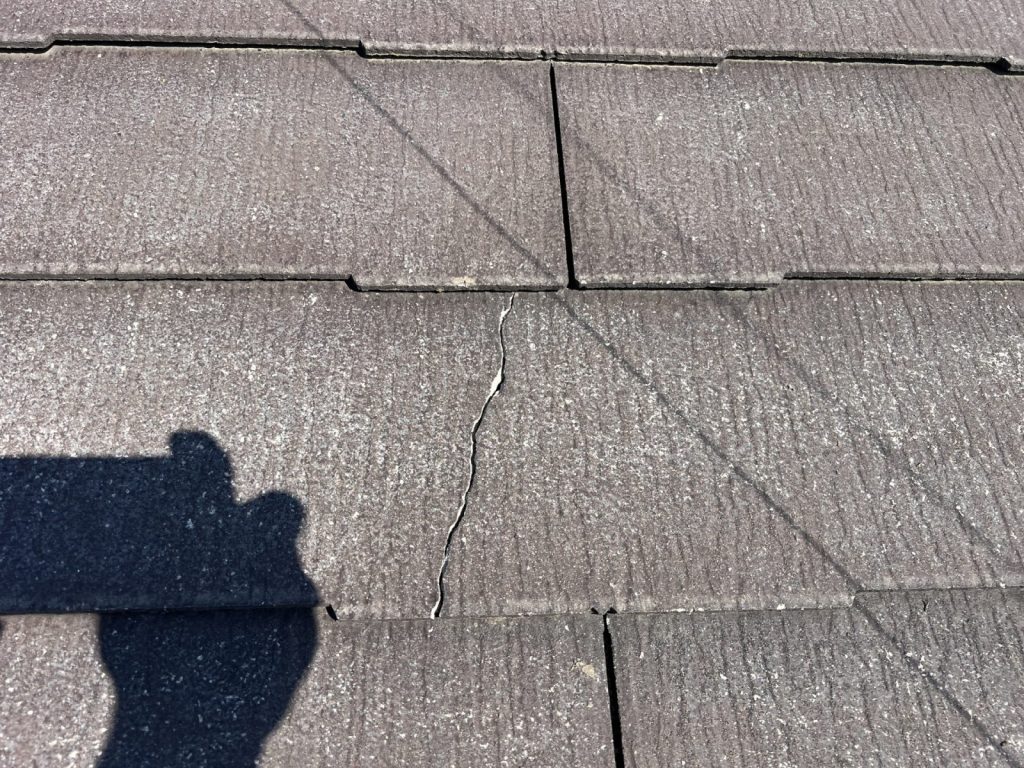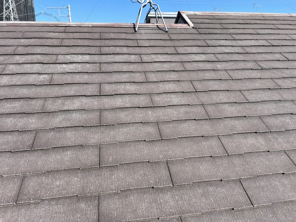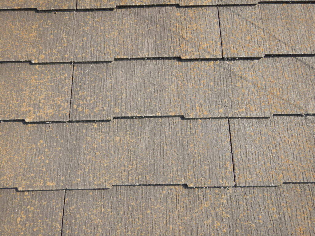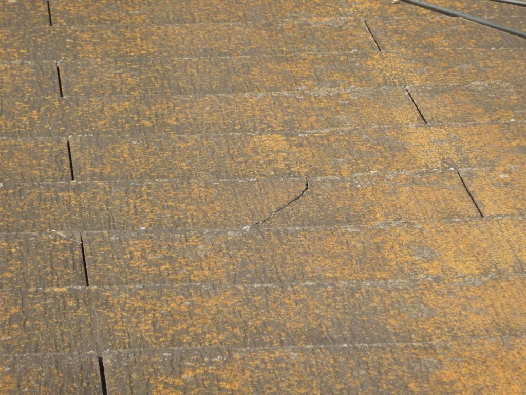 屋根洗浄前と洗洗浄後で一見すると異常なさそうですが、見慣れている方は屋根材の形状ですぐに判断できると思います。屋根のひび割れ方が縦に入ることは基本的に少ないため疑いをかけて調べたところ、築年数と現状を鑑みてノンアスベストの異常が多く報告されているい屋根材だったため、カバー工法のご提案になりました。屋根全体でほんの数枚の欠損しかありませんでしたが念のため塗装を一旦頭から離してお打合せにに進ませて頂きました。