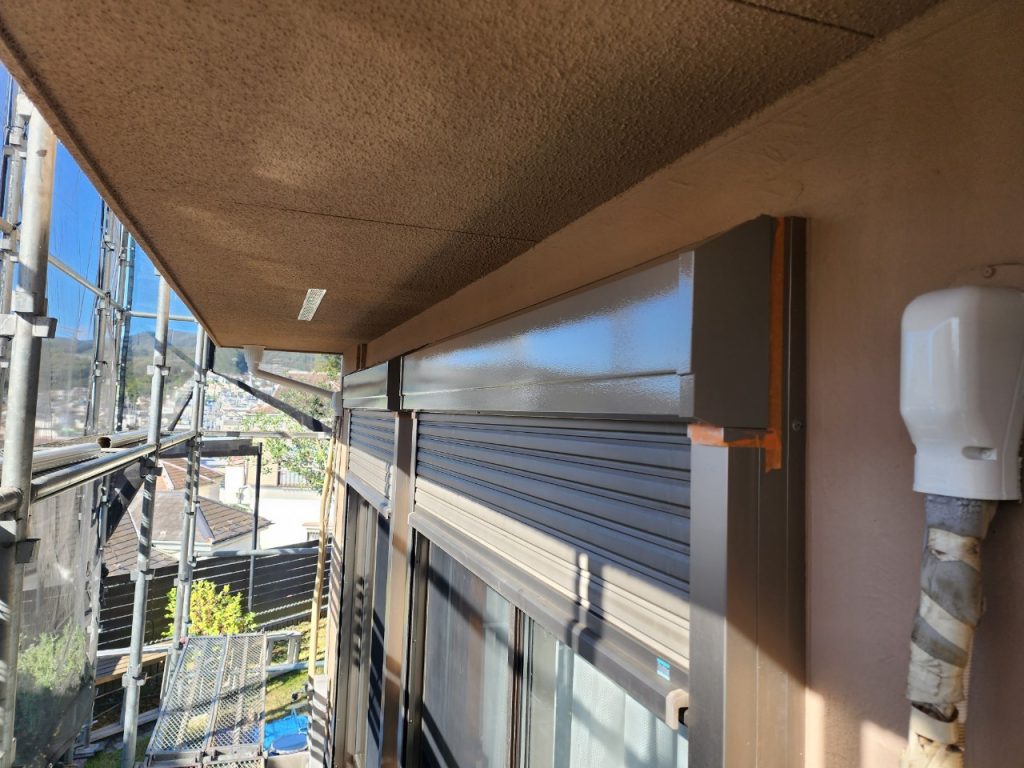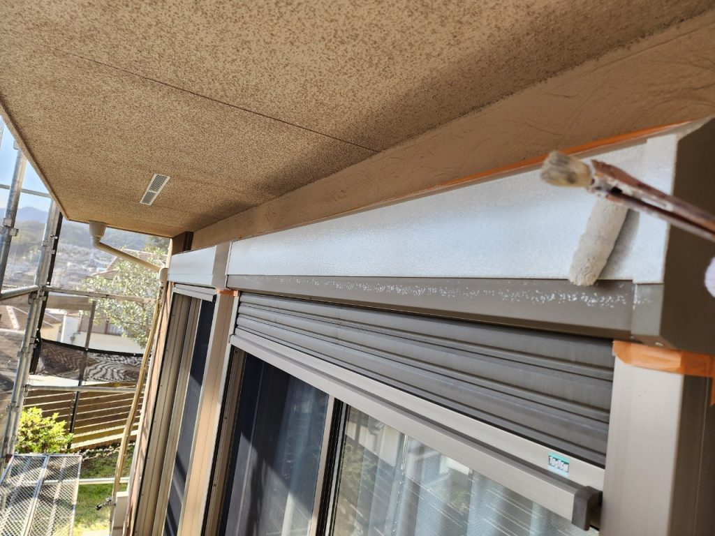 シャッターボックスに錆止めを塗装します。仕上げにフッ素塗料を2回塗りして仕上げます。