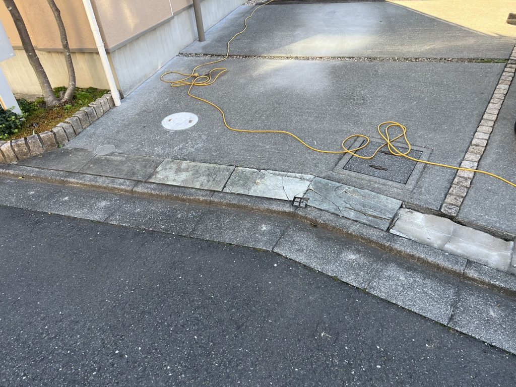 一見何でもないように見えますが高圧洗浄に部分的に見えてきたひび割れです。