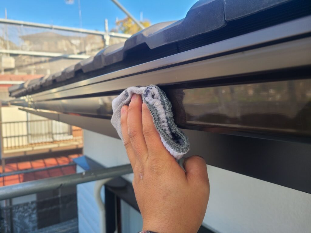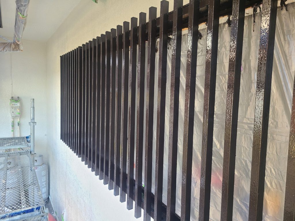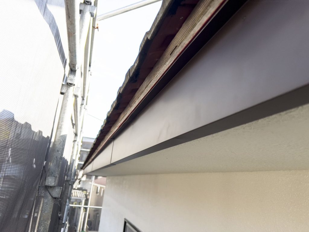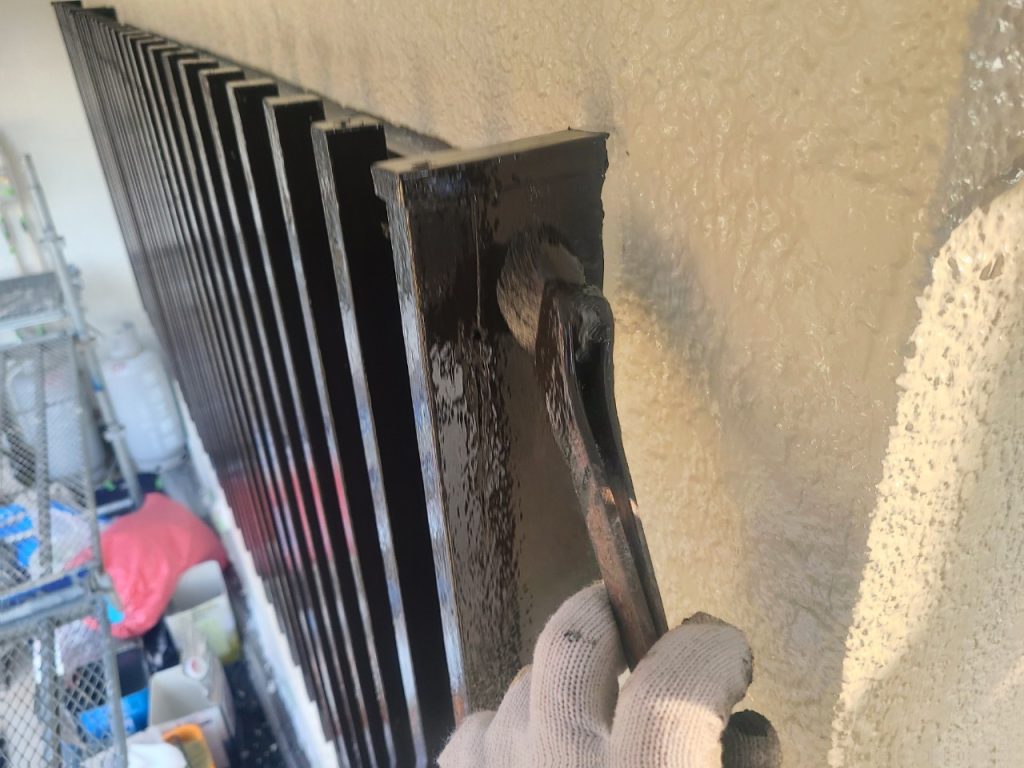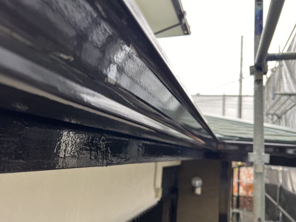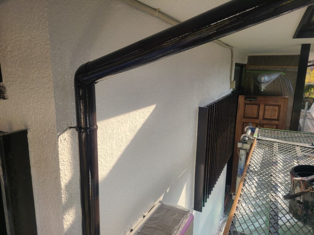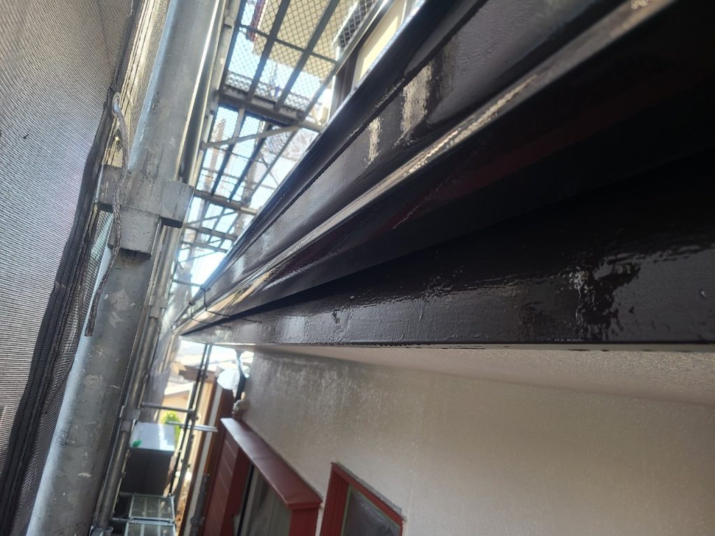 一部の軒樋を交換したので、ケレン、脱脂処理後に仕上げ塗料を2回塗りして仕上げます。