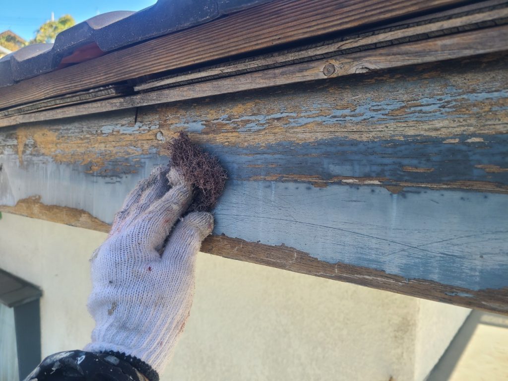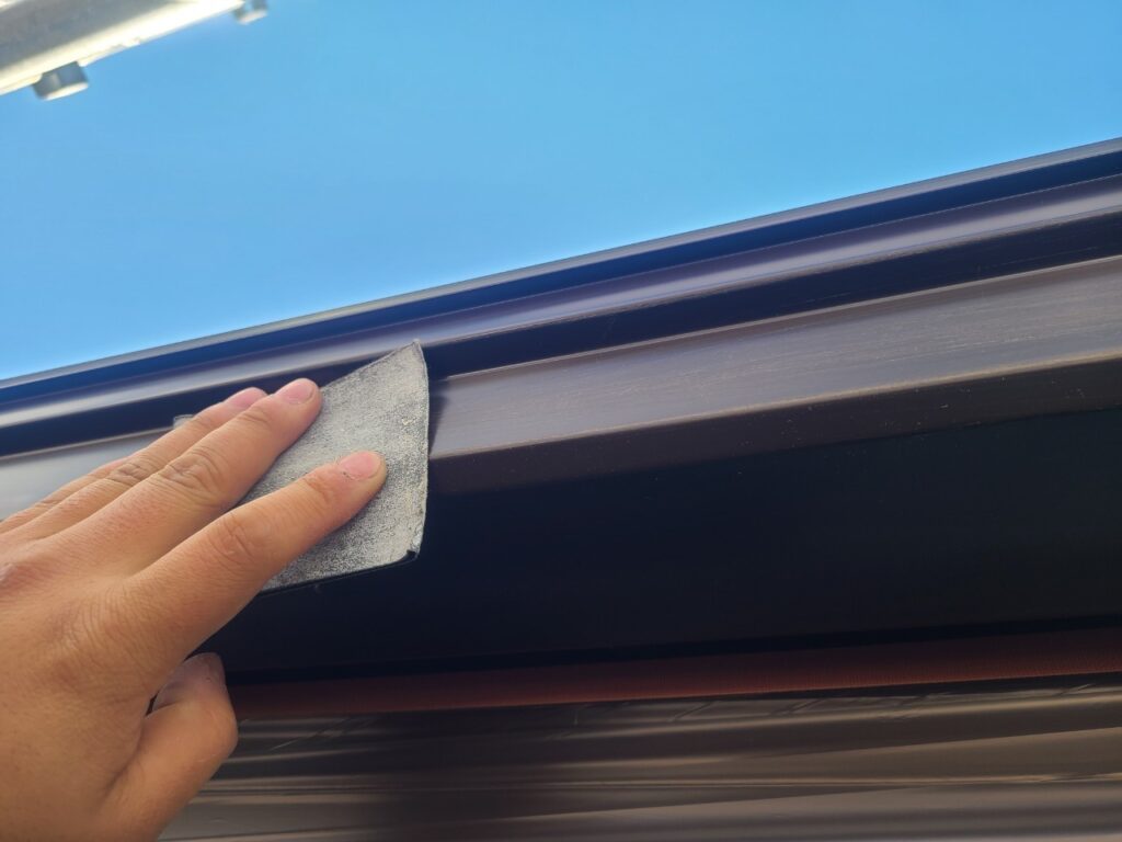 既存の上から板金を貼りますがただ被せるだけでは隠しただけの内容になるため、下地ケレンをし、下塗り塗装をした後に板金を貼ります。