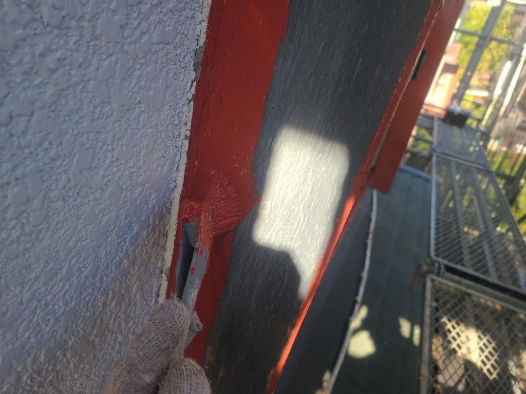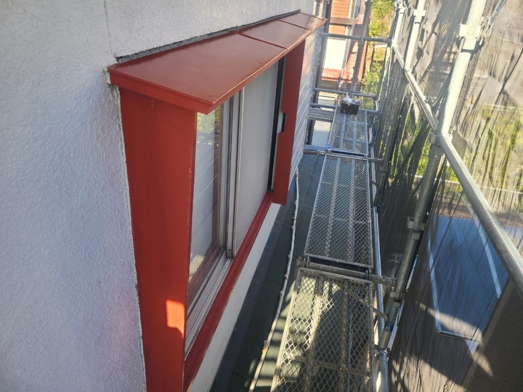 建物の造りにおいてサッシに木枠が付帯していたりしますので状態を考慮した改修を行います。下塗りに重防食下塗り塗料で木部は下塗りしていきます。