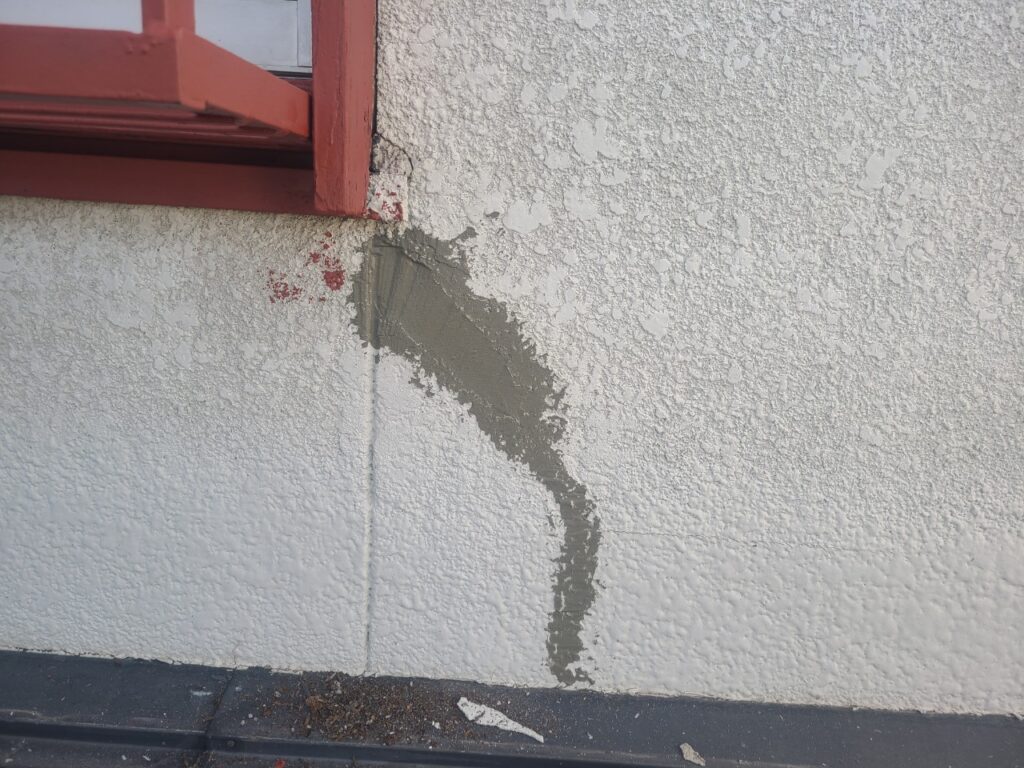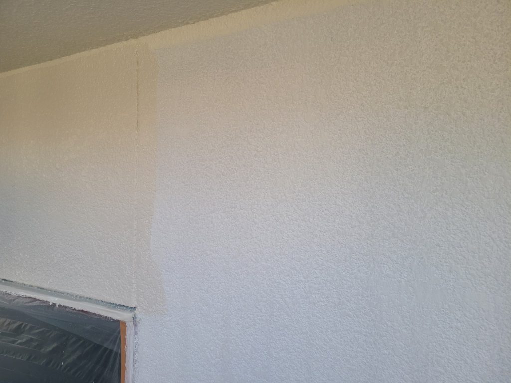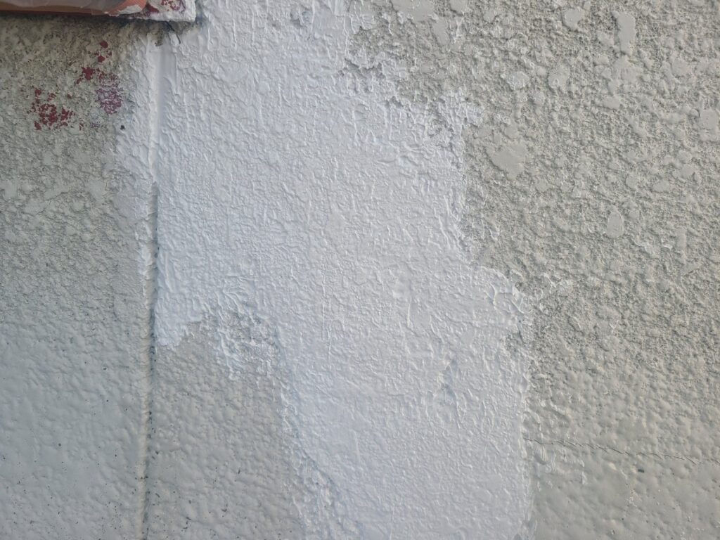 外壁の剥離部をカチオンフィラーにて補修し、肌合せをします。