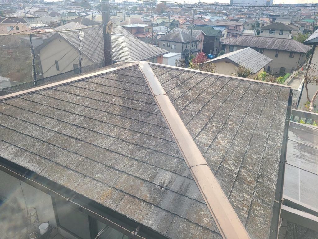 こちらの屋根は離れの屋根になります。過去に一度も塗装をしていないことで劣化が著しい状態になっています。
