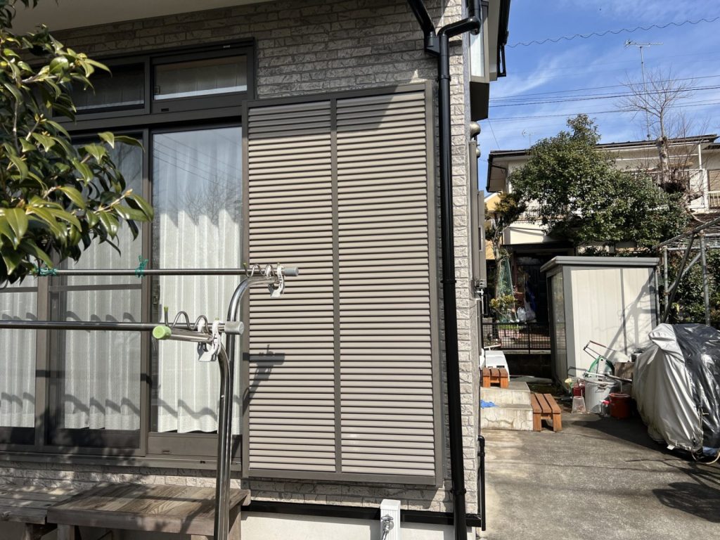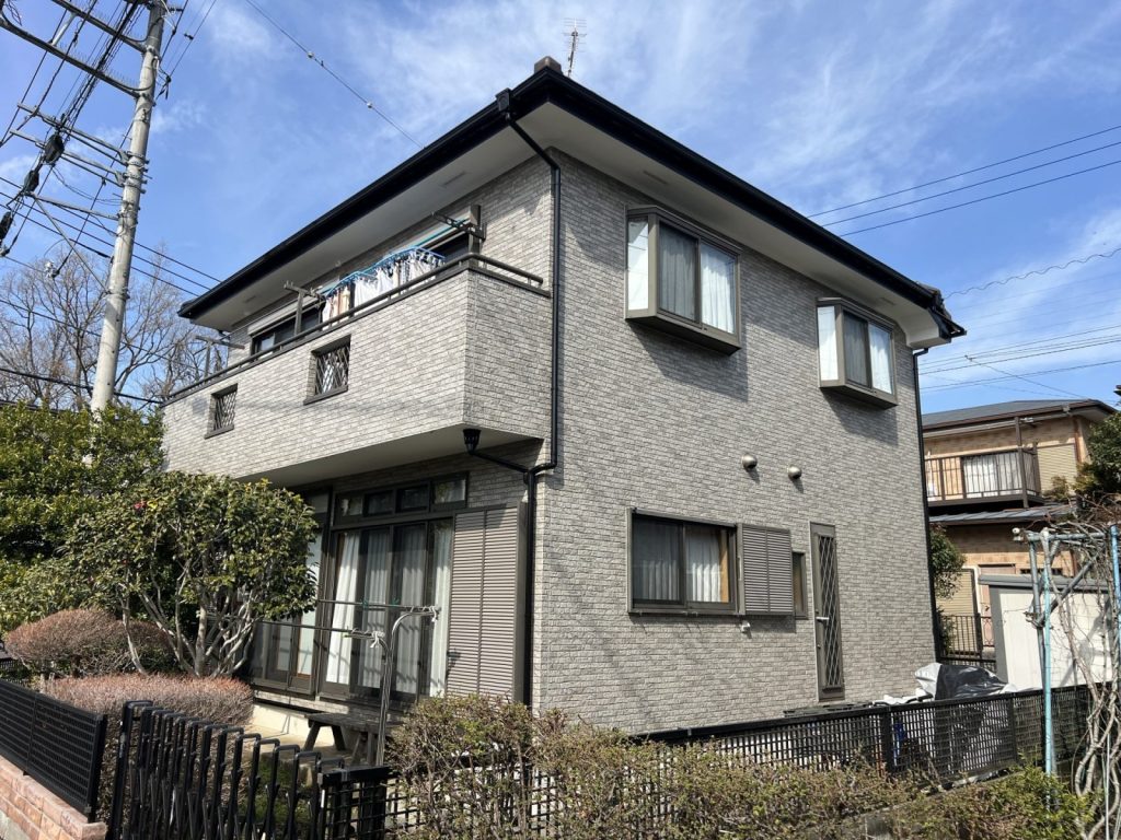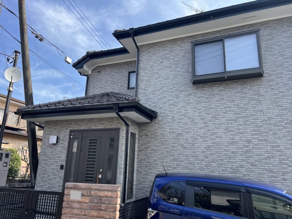 今後長期に保護したいご意向により、フッ素塗料のご提案をさせて頂きました。外壁はクリヤー艶ありで付帯部も全てフッ素塗料で仕上げてあります。外構の撥水塗装はサービスで行わせて頂きました。