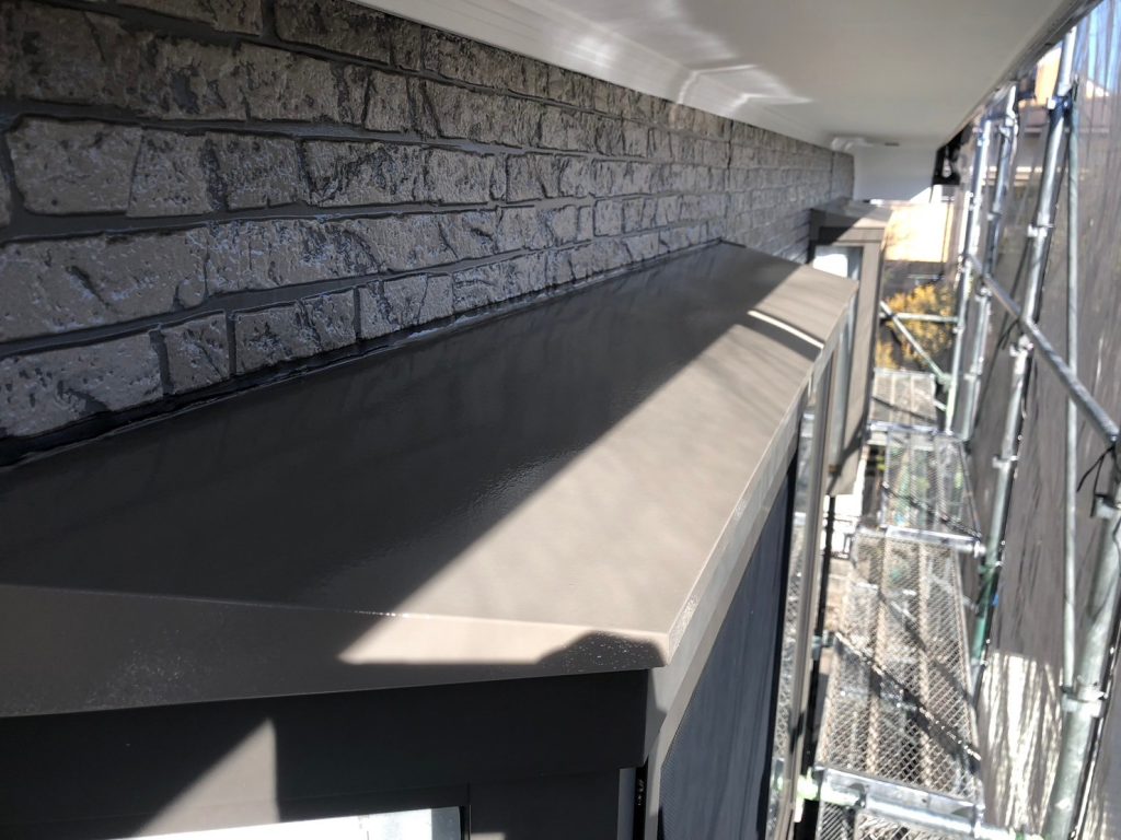 出窓の天板に錆止め塗装後、仕上げ塗料を2回塗りして仕上げます。