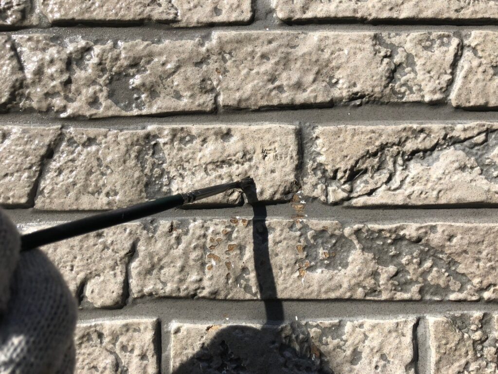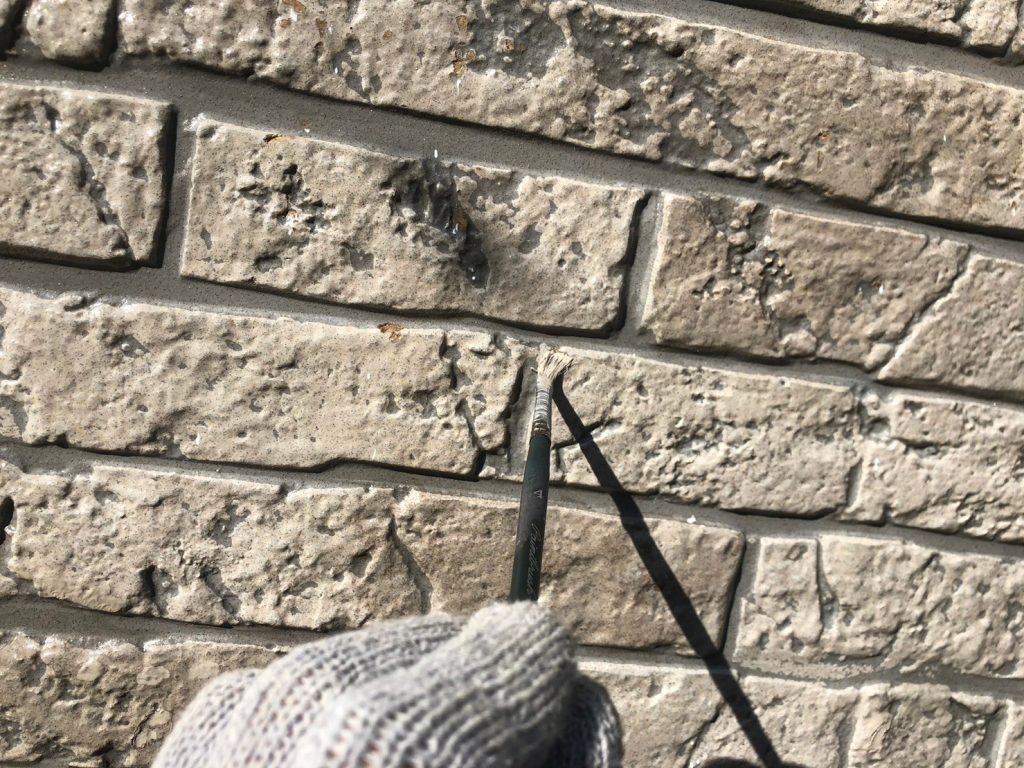 外壁がクリヤー仕上なためサイディング表面の欠損部を外壁色に合わせて艶消し塗料で何色か作りタッチアップ補修します。